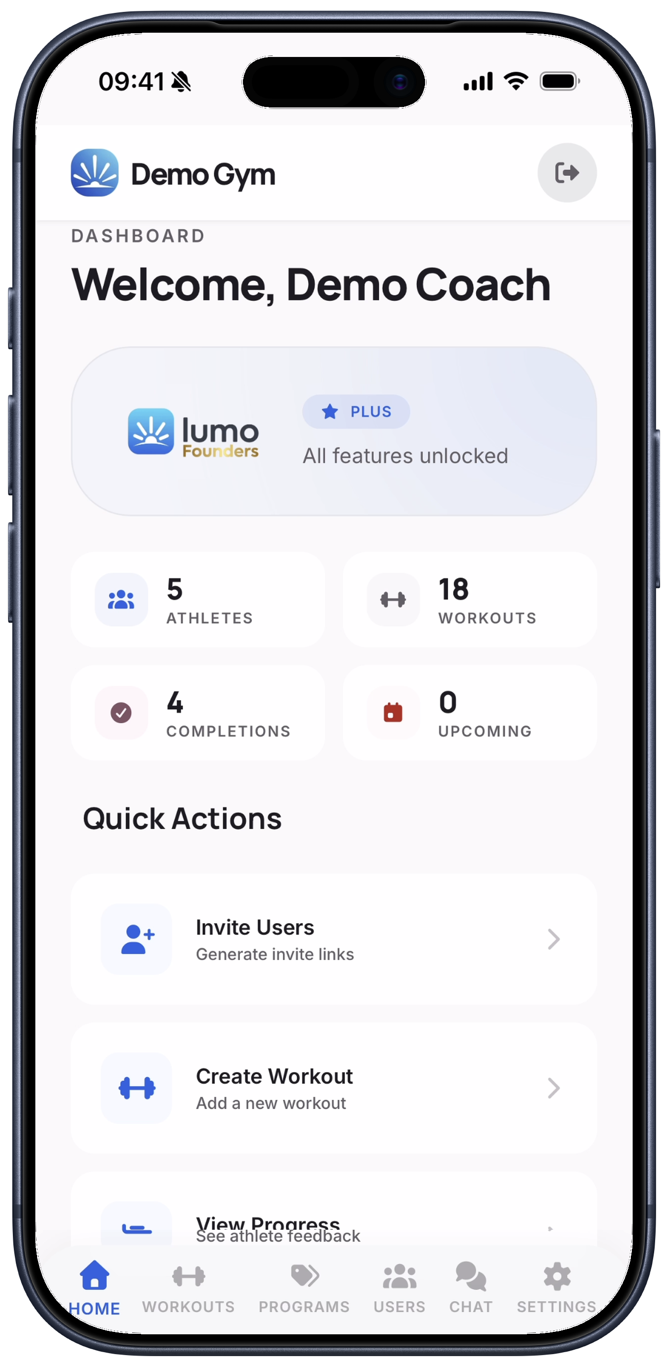 Invite your athletes, assign workouts or programs, and track their progress. That's it — start coaching.